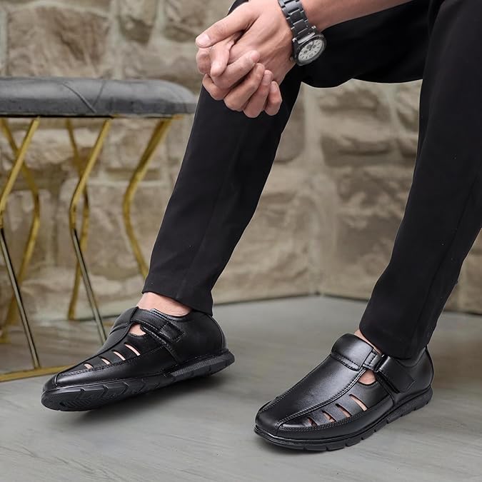 • Premium Faux Leather: These sandals for men are crafted from high quality Faux leather, delivering a refined, durable look, offering both elegance and lasting performance